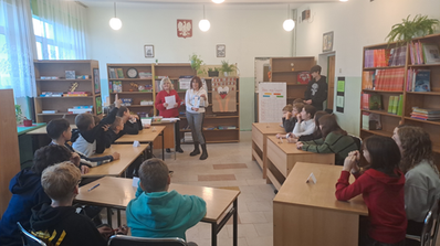 22 października 2025 zawitał do naszej szkoły kolejny gość związany z książką i twórczością. Była to pani Anna Gwiazdowska nauczycielka, pisarka i artysta - plastyk. W klasach 3a i 3c zaprezentowała teatrzyk kamishibai z własnymi pracami. Uczniowie nie tylko mieli okazję uczestniczyć w prezentacji bajki afrykańskiej "O dziewczynie, która miała hebanową skórę" , ale dodatkowo posłuchać opowieści i pooglądać rekwizyty z Czarnego Lądu. Na dodatek robienie rytualnych masek było świetną zabawą... Natomiast klasa 6d wysłuchała opowieści z książki pani Gwiazdowskiej „Baśnie i opowieści o Bydgoszczy” z prezentacją pięknych rysunków.